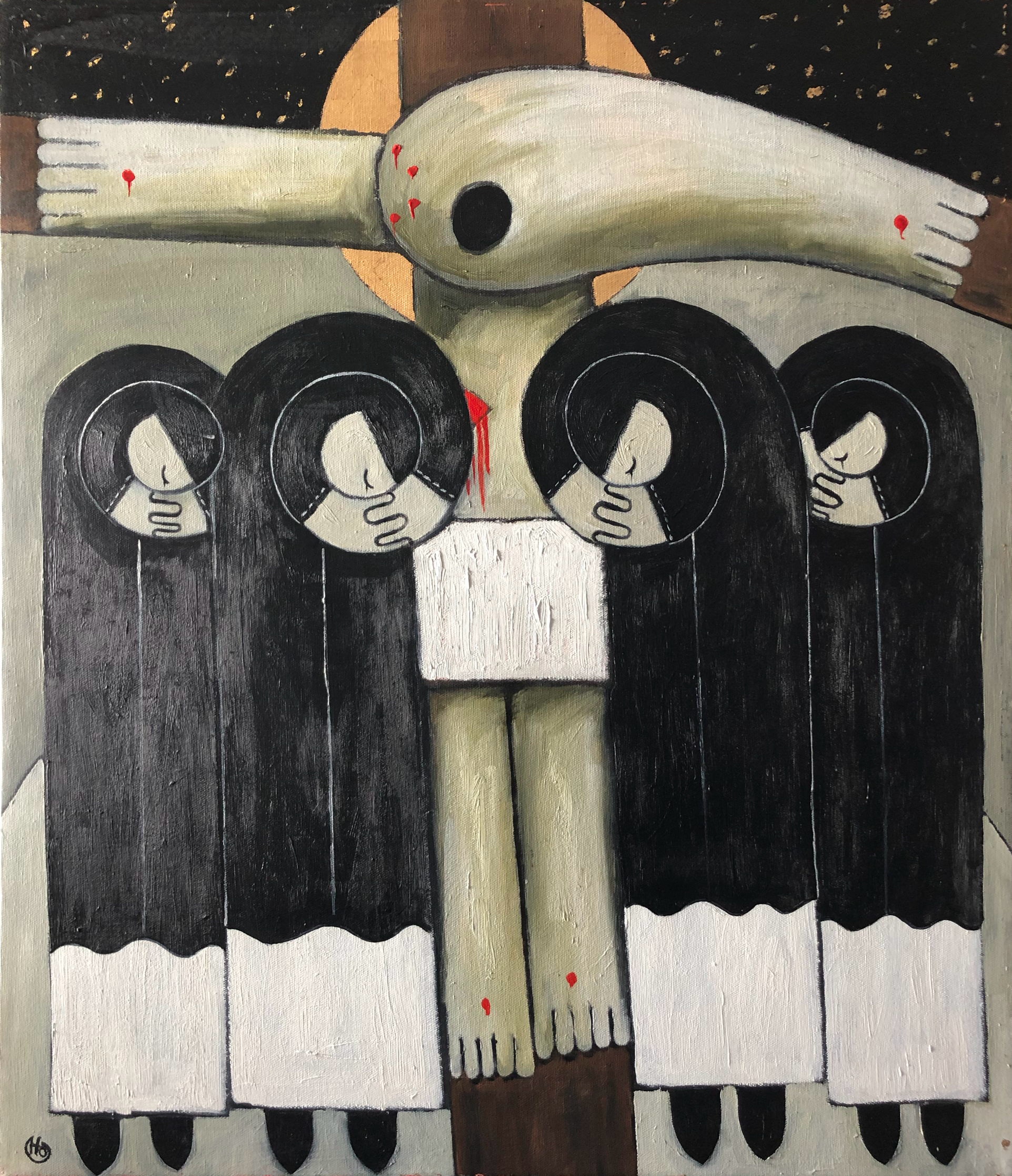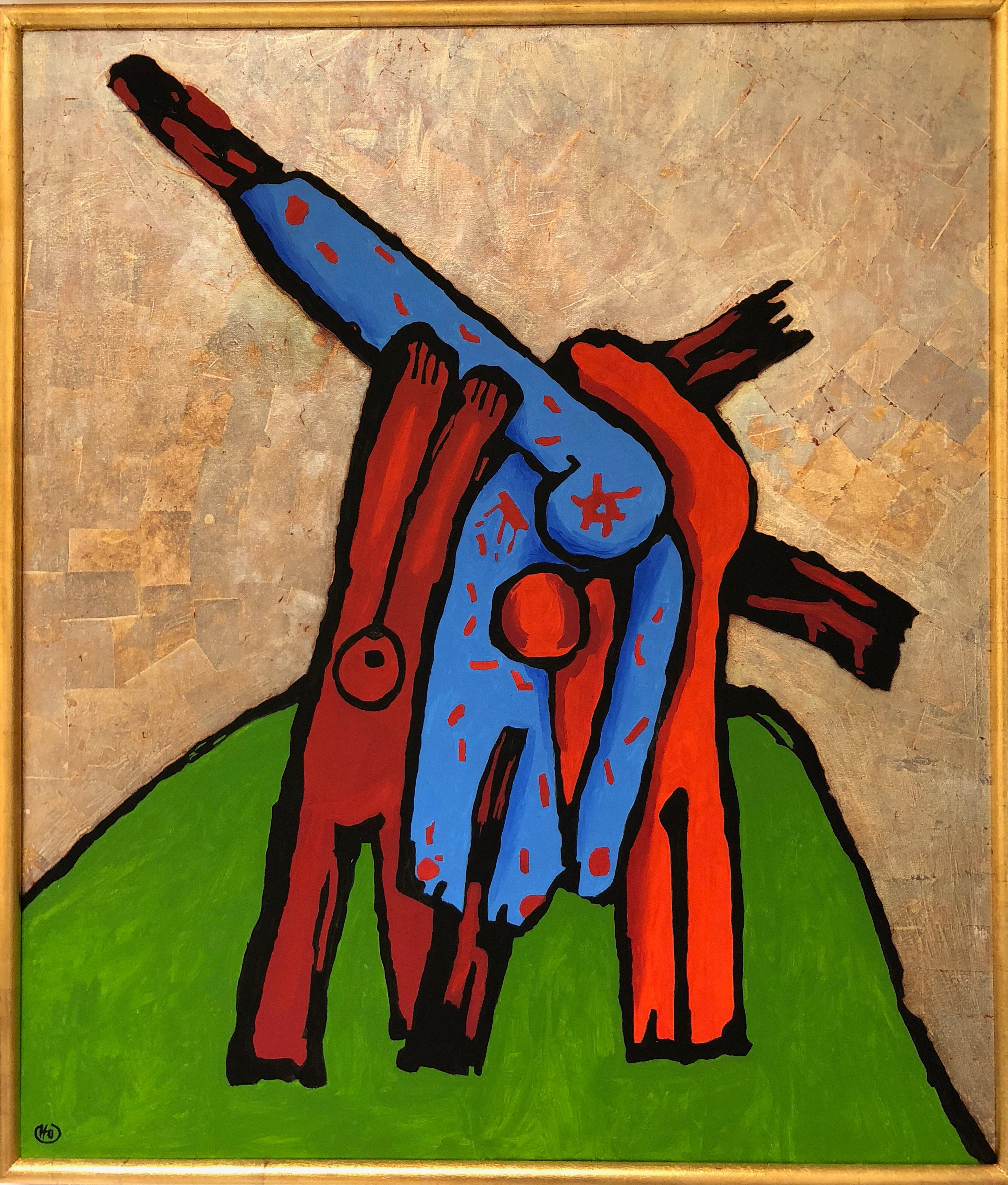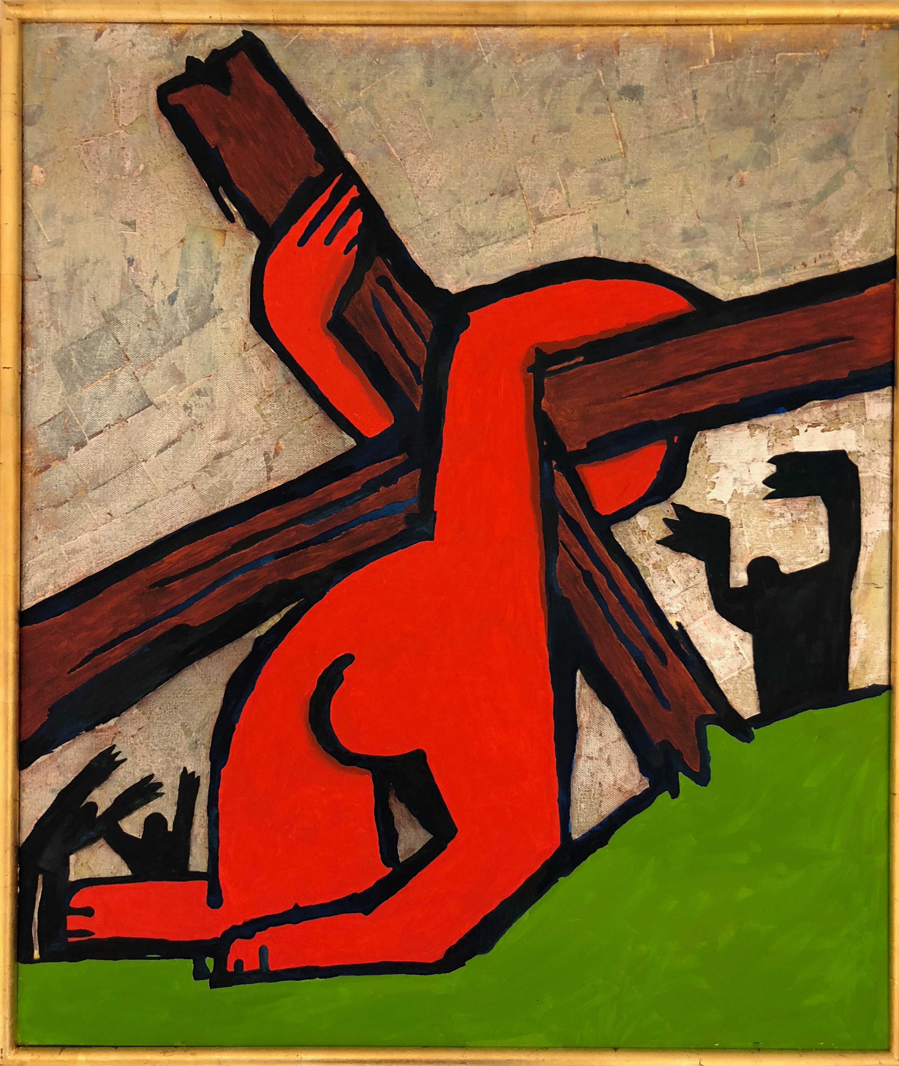 Kreuztragung Öl, Blattsilber auf LW