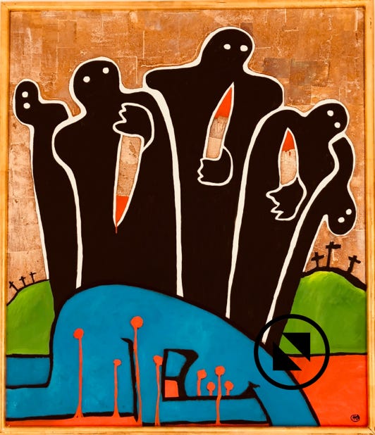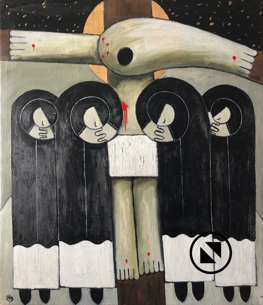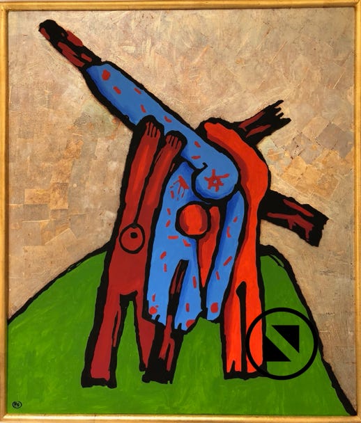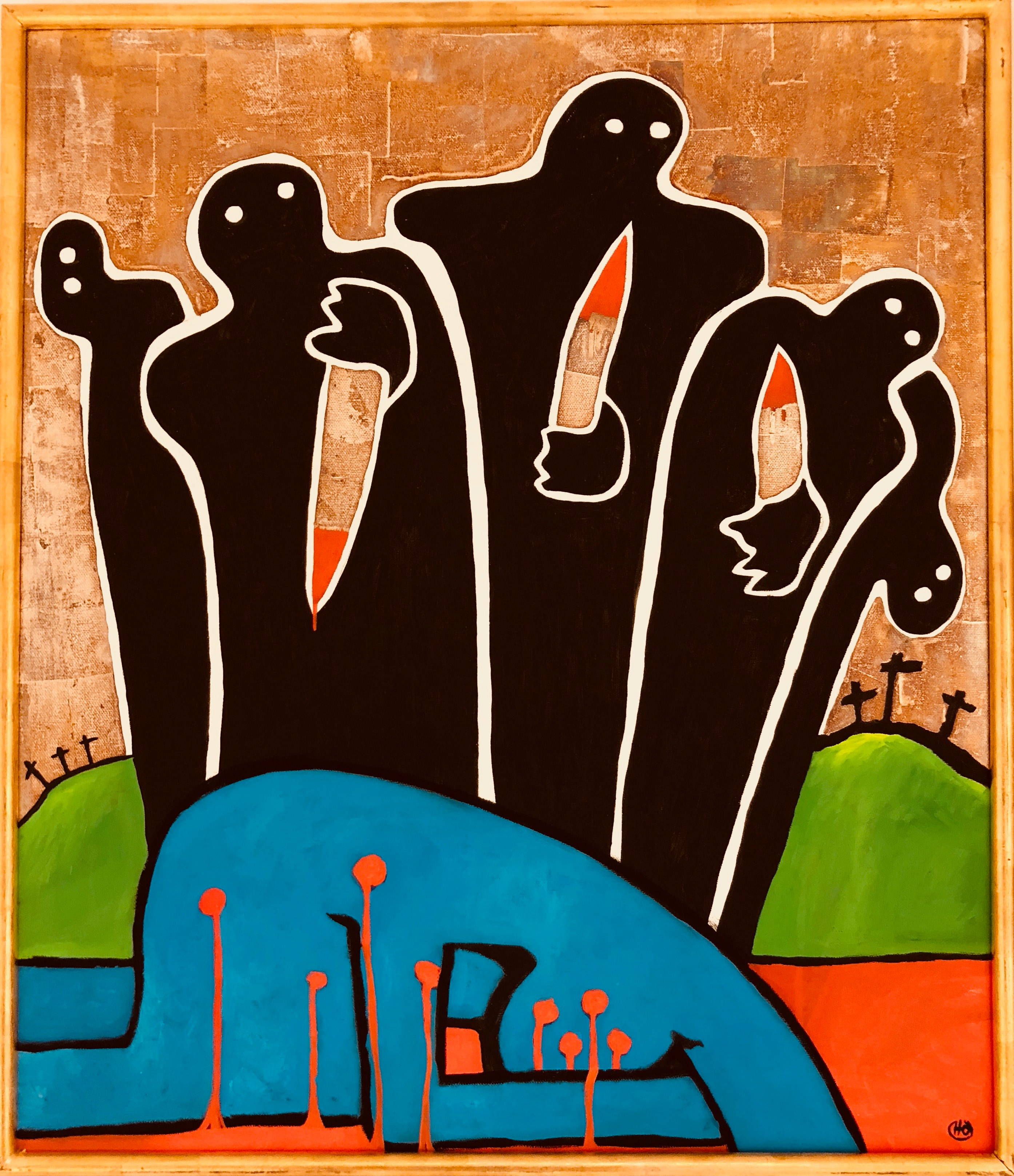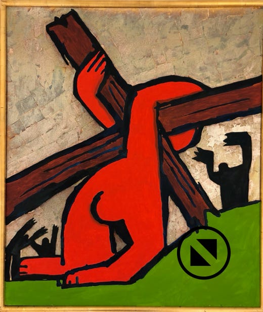 Kreuztragung Öl, Blattsilber auf LW