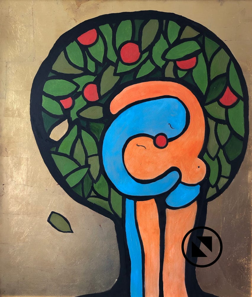 der erste Kuss Öl, Blattgold auf LW