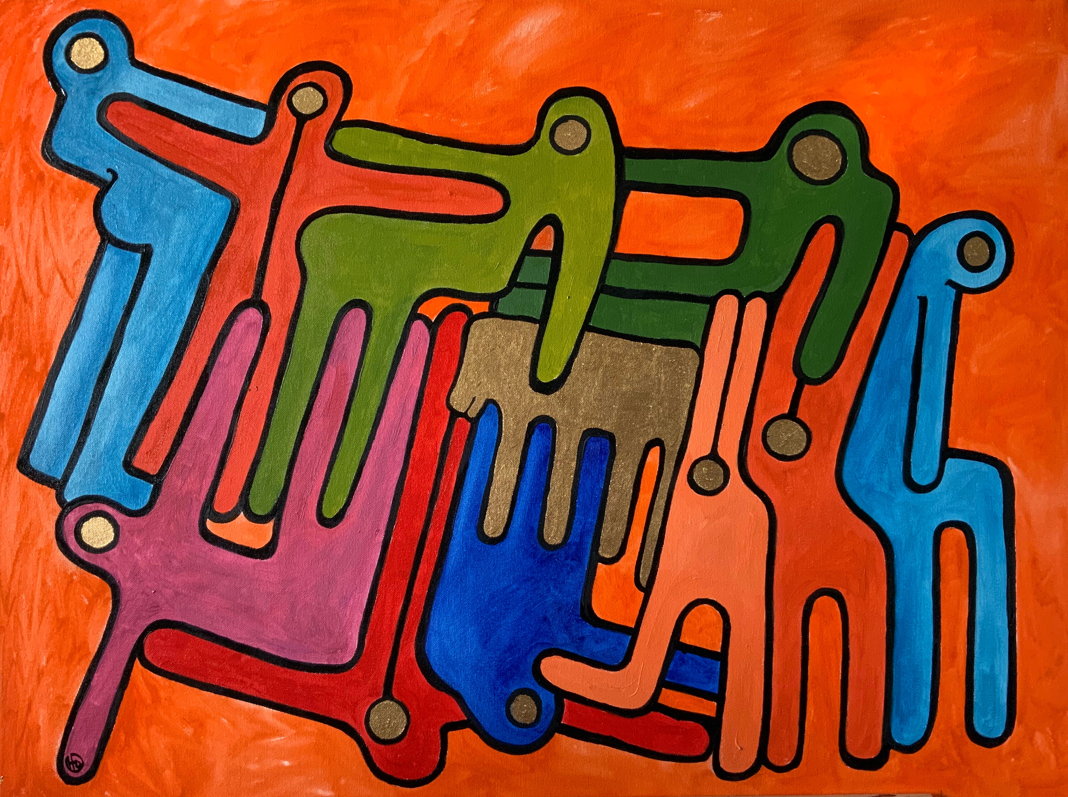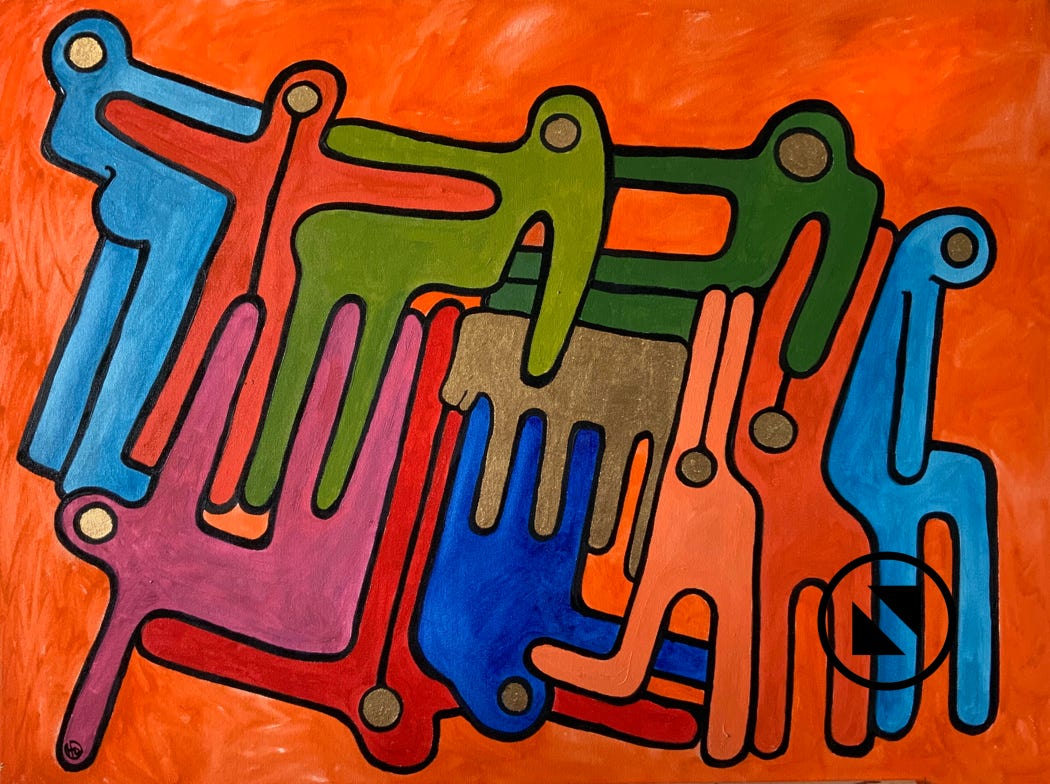 Tanz um das goldene Kalb Öl, Blattgold auf LW 60x80 cm